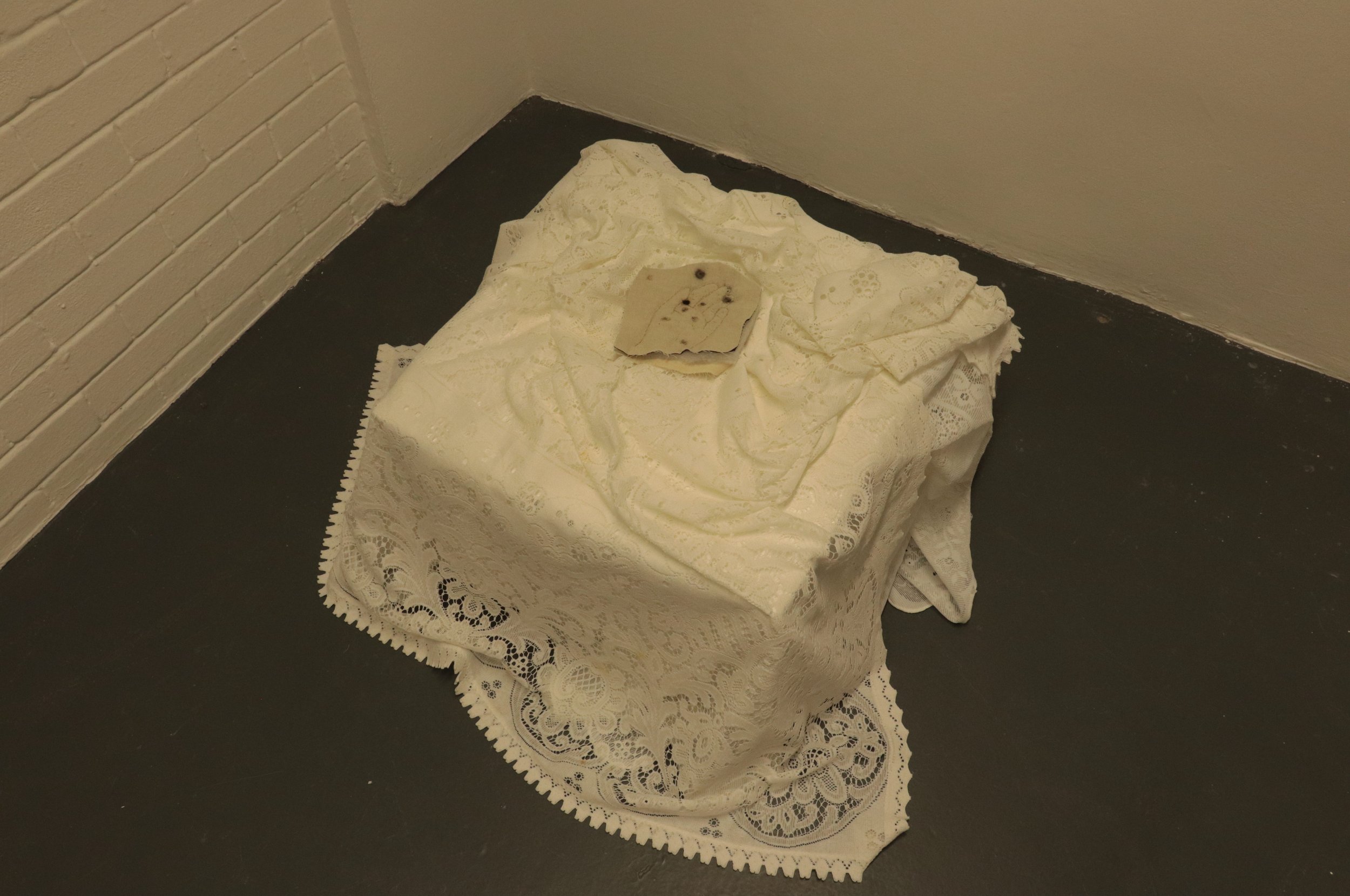 Table cloths, wadding, thread, ash.