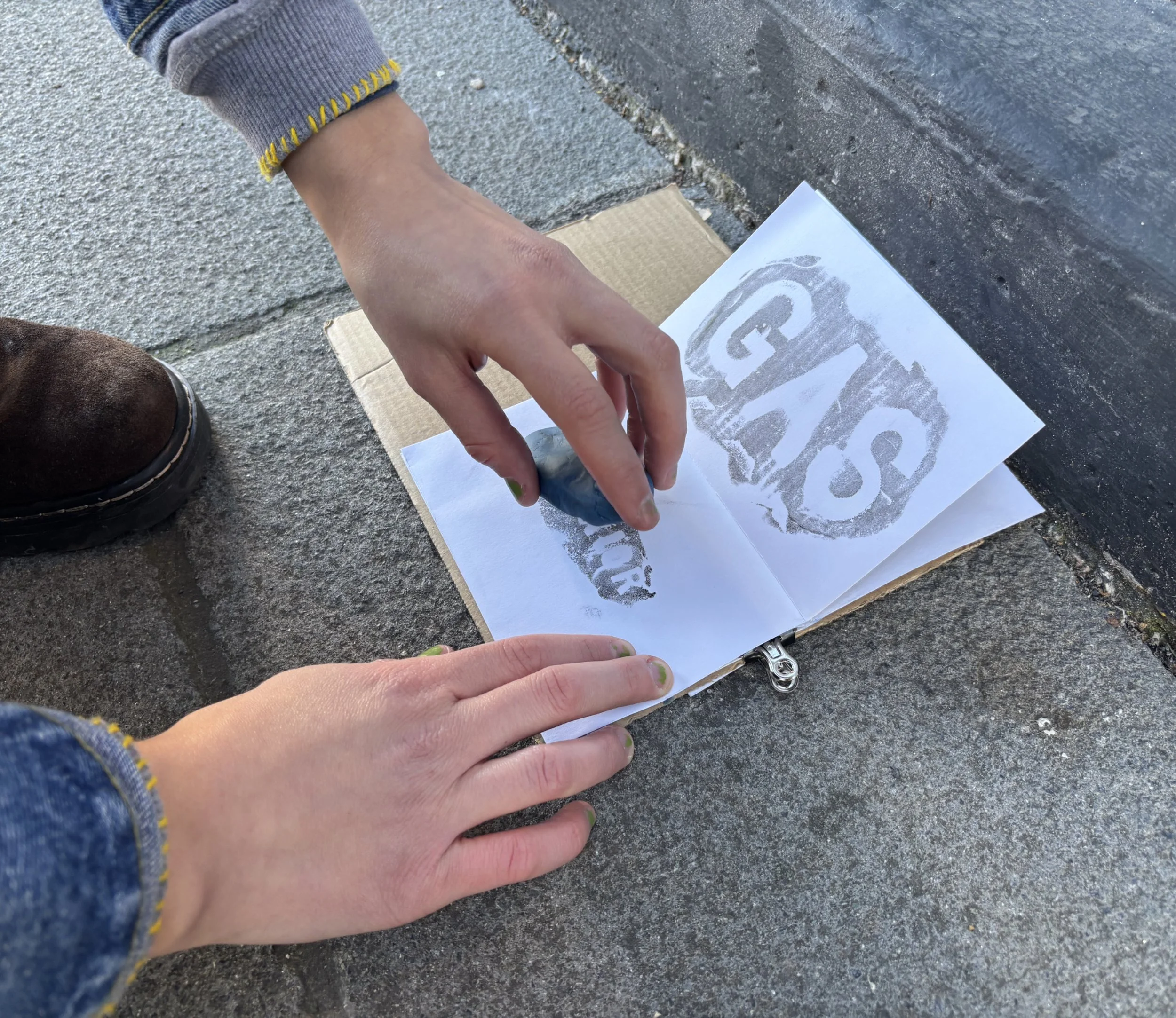 Observing, noticing, focusing. Using your senses to absorb your surroundings, this workshop will highlight fragments of the land. Encountering objects and connecting yourselves to the local area, you will examine the fragile commonalities that build up our everyday lives. Beginning with zine making, workshop participants will create a vessel to hold the contents of their journey. Zines in hand, you’ll explore the surroundings of the gallery, being attentive to drain covers usually walked over, signage taken in at a glance, and surfaces lying dormant, waiting for our intervention. Then, using play-doh, you will take imprints of textures, embellishments, and surfaces. Transferring these traces of our surroundings to our zines, each participant will have generated an archive, a reference to reflect, but also a connection made between person and place.
